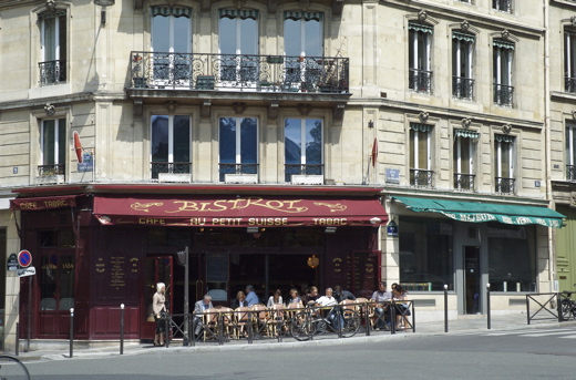 On your right (north) rue Corneille, which runs to the Place de l’Odéon, intersects rue Vaugirard. At this corner is a café, « Au Petit Suisse » for which there are some favorable reviews available online. The address of the café is 16 rue de Vaugirard.