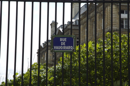 To be sure, rue de Vaugirard exists. It is the longest rue in Paris (over 4 km en longuer), and one of the oldest, being an ancient Roman road connecting Lutèce (now Paris) with Dreux. Its eastern terminus (beginning?) lies directly opposite the lovely Place de la Sorbonne pictured here (where my wife and I had a lovely déjuener at a cafe on the right, the name of which escapes me).