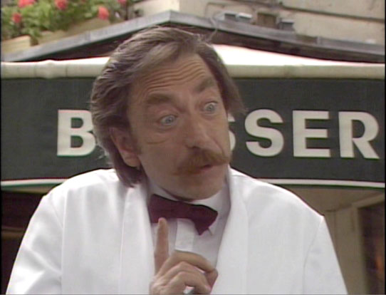 I’ve always enjoyed the character of the serveur in these episodes, played by Olivier Lebeau, who waxes rhapsodic about the talent of Hemingway before admitting he’s never read any of his books.